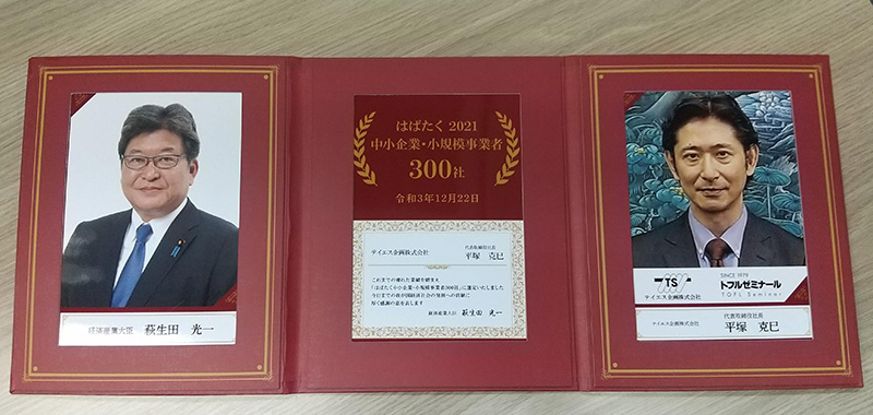 テイエス企画株式会社・トフルゼミナールは、経済産業省 中小企業庁が主催する「はばたく中小企業・小規模事業者300社」「コロナ禍に立ち向かう事業者の取組事例」に選出されました。