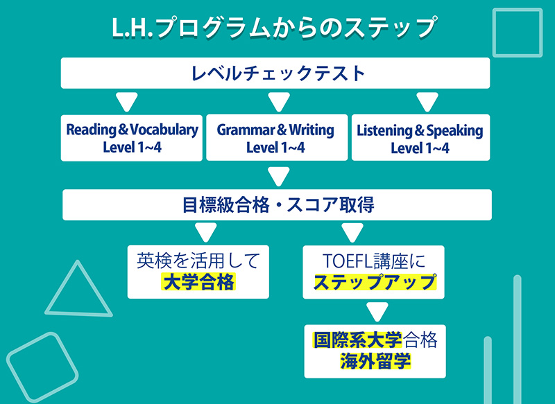 Level 3までは知識の習得を前提としてLevel 4からは大学受験・英語資格試験の対策として、実戦的な演習を行います。
