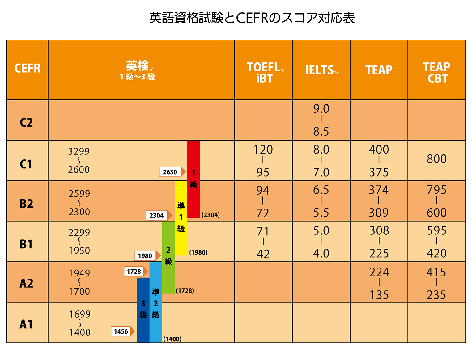 また、CSEスコアはCEFR(ヨーロッパ言語共通参照枠)と呼ばれる世界基準のレベルで自分の英語力を確認することができ、その他の英語資格試験ではどの程度のレベルなのか判断する参考にもなります。