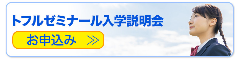 国内大学受験新入試ガイダンス、各校で実施中!AO推薦入試今から始める総合型・学校推薦型選抜」個別相談会を全校舎で実施!オンラインでも実施します英語授業大学英語で授業を行う大学・学部入試説明」個別説明会を全校舎で実施中!国内大学受験国公立大を総合型・学校推薦型選抜で狙う!説明会・個別相談会を全国各地で実施中!国内大学受験ICU志望者必見!ICU実戦模試を全国で実施中!AO推薦入試国公立大学総合型・学校推薦型選抜の説明会を実施しています!AO推薦入試【難関大総合型選抜個別説明会各校舎で開催】慶應法学部FIT入試、ICU総合型選抜、上智公募制推薦の対策の秘訣を説明します!!国内大学受験ICUの入試傾向に準拠した無料模試を実施しています!海外留学海外大学進学&高校留学 各種説明会実施中!西日本海外在住学生対象 オンライン夏期講座受付中資格試験初めての4技能英語試験説明会+トフルゼミナール講師による解説動画(TOEFL iBT®・IELTS™・TEAP・英検準1級)国内大学受験【仙台校】2021年度の大学入試合格実績を掲載しました!国内大学受験札幌分室より神戸大、上智大合格!体験談を掲載しました。西日本秋スタート!九州地区在住の方対象「50講座から選べる!オンラインスクール」Web・ビデオ学習トフルゼミナール オンライン校が開講致します!!総合冬スタート キャッチアップスペシャルプログラム