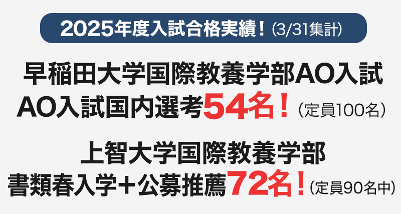 English Based Admissions ユニバーサルアドミッションズ全体で120名 |