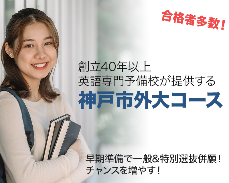 配点全学部共通 志望理由書・活動報告書・調査書 100点 英語外部検定資格 100点 面接 150点 レポート課題 150点 合計 500点 トフルゼミナール神戸校で習得できる合格対策のポイントその1:英語検定試験のスコア取得 ~スコアは点数化されます!~外部検定試験の得点が点数化されるため、ハイスコア取得が求められます。英検、TOEFL® iBT、TOEIC®、TEAPなど複数の資格を取得し、アピール出来る英語力を身につけましょう。検定試験は、各試験によって難易度や試験日が様々であるため、早期対策と計画的なスケジュールを組むことが重要です。その2:出願書類の作成、面接対策 ~”自分”を表現できる人材が求められる!~志望理由書・活動報告書は、面接に繋がる大事な書類です。大学教授を相手に自分の考えを論理的に組み立て的確に答えるためには、大学・学部・自己研究が合格の鍵となります。その3:体験授業・レポート課題対策 ~イメージは大学1年生レベルの力をめざす!~高校の授業や読書、新聞記事などに目を通して日ごろから物事を多角的に考察できる力を身につけることが重要です。その上で、自分の考えを論理的にまとめ、意見が書けるようにトレーニングを積むことが合格に繋がります。②「学校推薦型選抜入試(全国枠・神戸市内枠)」(2025年度入試)選抜概要書類審査:高校の成績、評定3.8以上、志望理由書