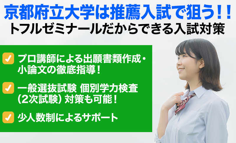 京都府立大学は「「志望理由書」において、英語の民間試験を含めた様々な資格・検定試験の取得実績に基に、本学への志望理由や入学後の目標などをアピールすることの妨げるものではありません。」と発表しています。高い英語資格で他の受験生より優位に出願していきましょう!