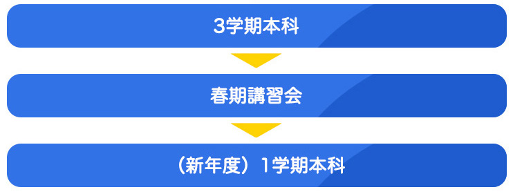 3学期からスタートして、受験を見据えて1年間で着実に実力を伸ばし、もうワンランク上の志望校にチャレンジするためのコースです。現学年も終盤となった今、新学年に向けて"今"スタートしましょう!