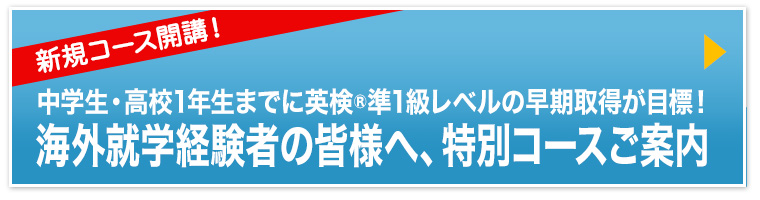 海外での就学経験のある帰国生(日本の高校卒業)を対象に、海外で身につけた英語力を武器に将来の進学希望先に向けて、英語総合力のブラッシュアップのほか、高2生対象に総合型選抜入試および一般受験など、海外就学経験を生かした入試制度を利用した対策をトータルサポートします。