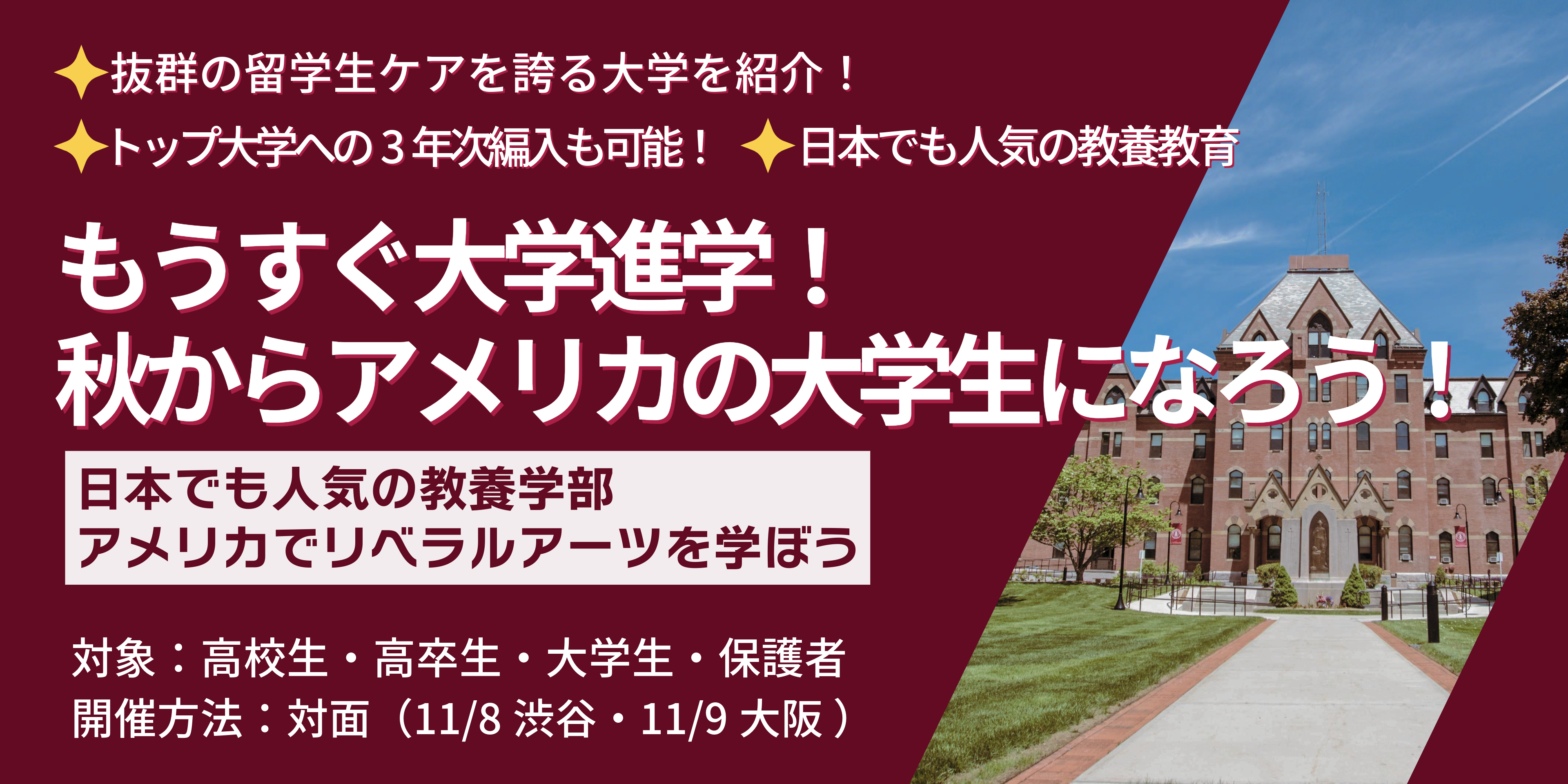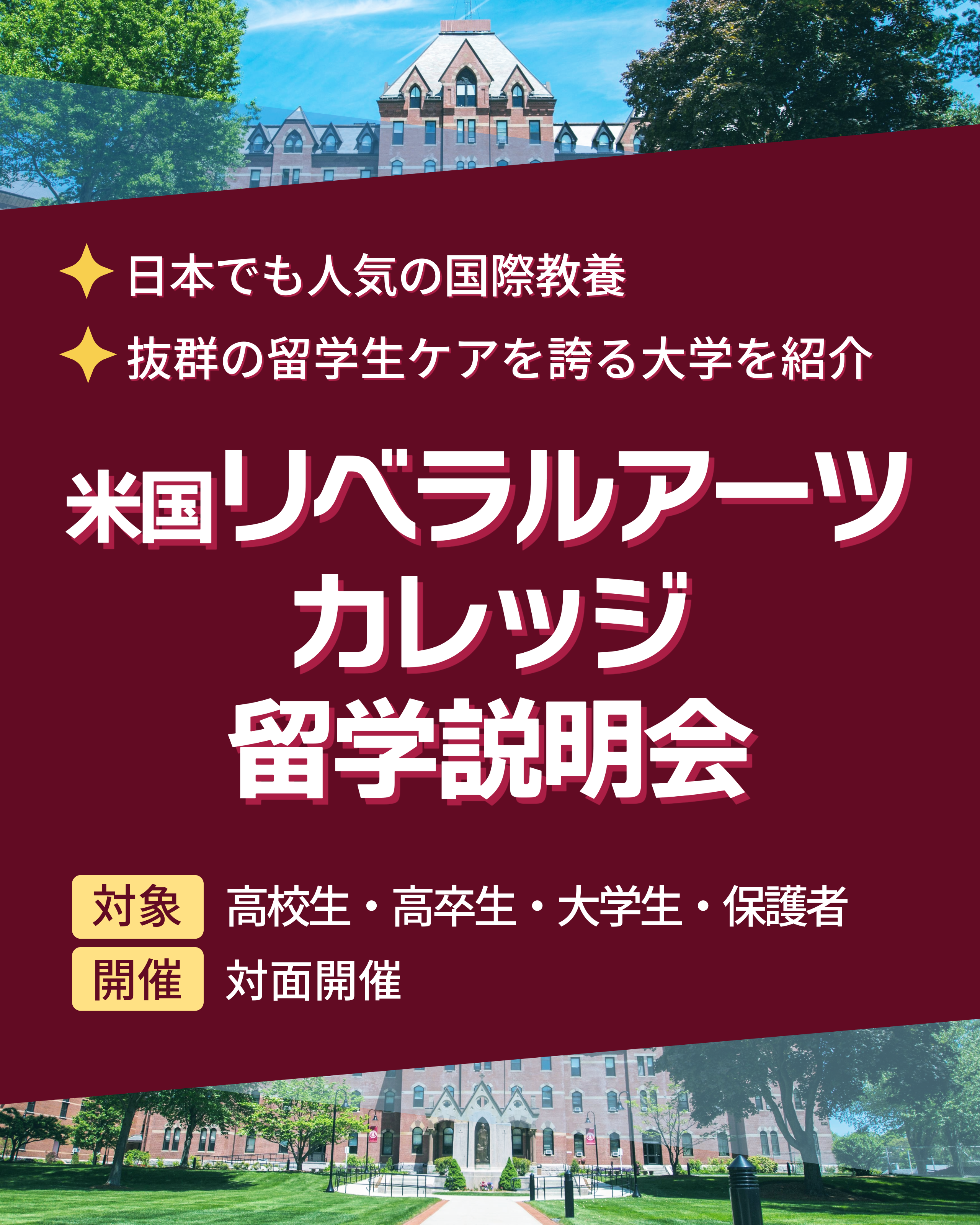 | アメリカで大学生になろう!リベラルアーツカレッジ説明会・個別相談会 | |
