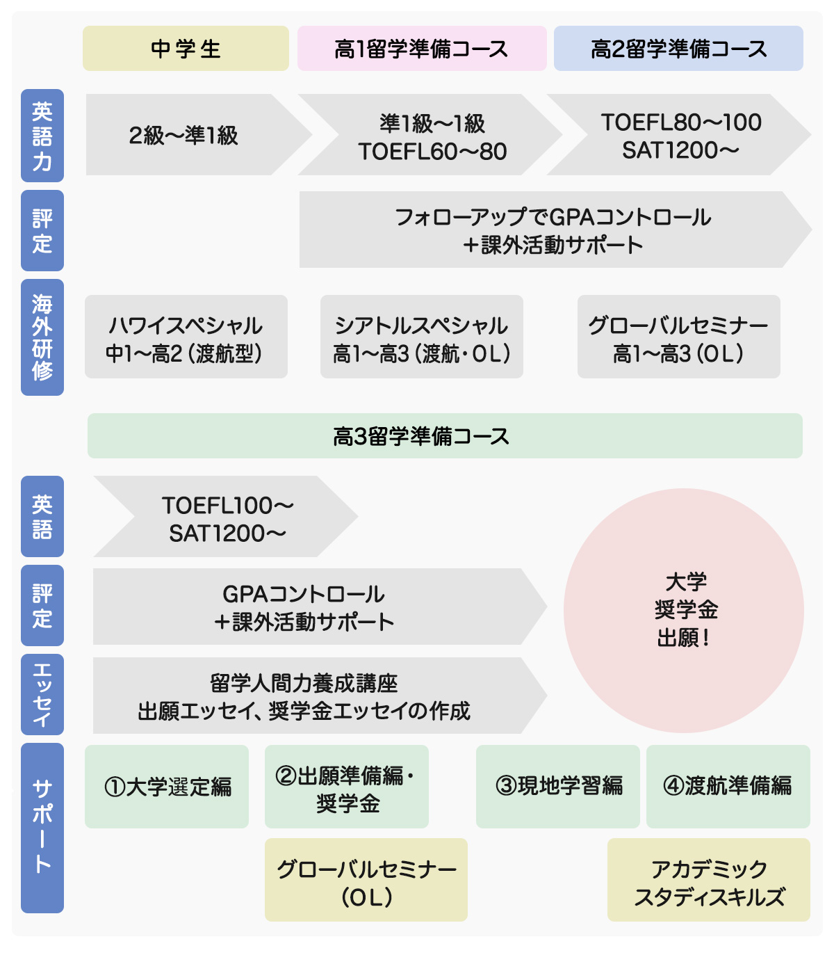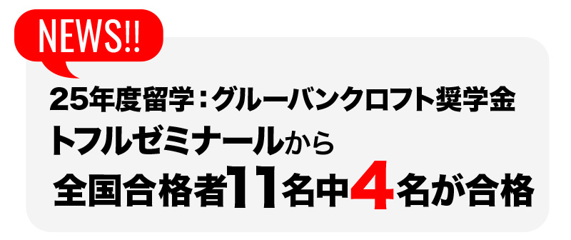 トフルゼミナールの海外大学進学コースでは、奨学金獲得を目指しながら海外大学の合格を狙うサポートを行っています。