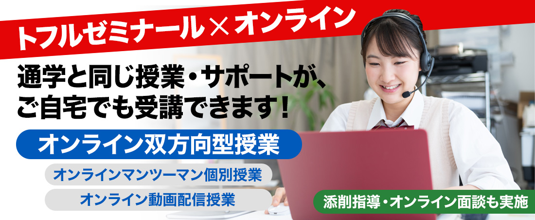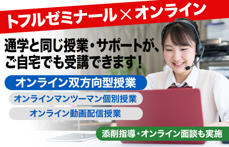 トフルゼミナールでは、オンラインでも通学と変わらない授業・サポートが、ご自宅でも受講できます!